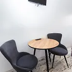 Obiekt noclegowy jest wyposażony w aneks kuchenny z kuchenką mikrofalową, czajnikami elektrycznymi i lodówką. Aby zapewnić wygodny i relaksujący pobyt w obiekcie proponują gościom skorzystać z urządzenia do parzenia kawy/herbaty. Maksymalnie 7 min spacerem od obiektu mieści się restauracja Kartoplyana Khata, w której podają dania kuchni wschodnioeuropejskiej. Obiekt mieści się kilka metrów od najbliższego przystanku autobusowego Tobilevycha.